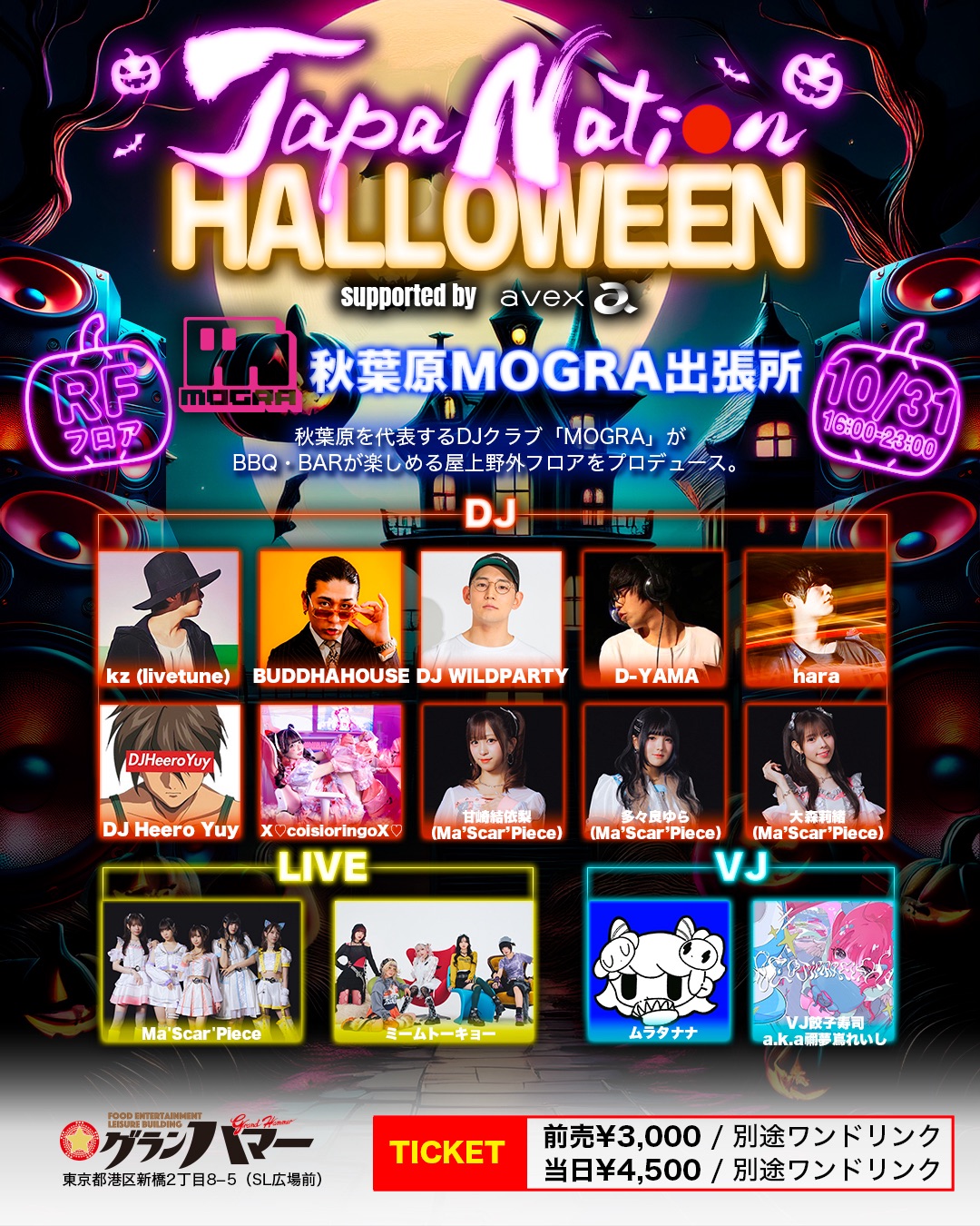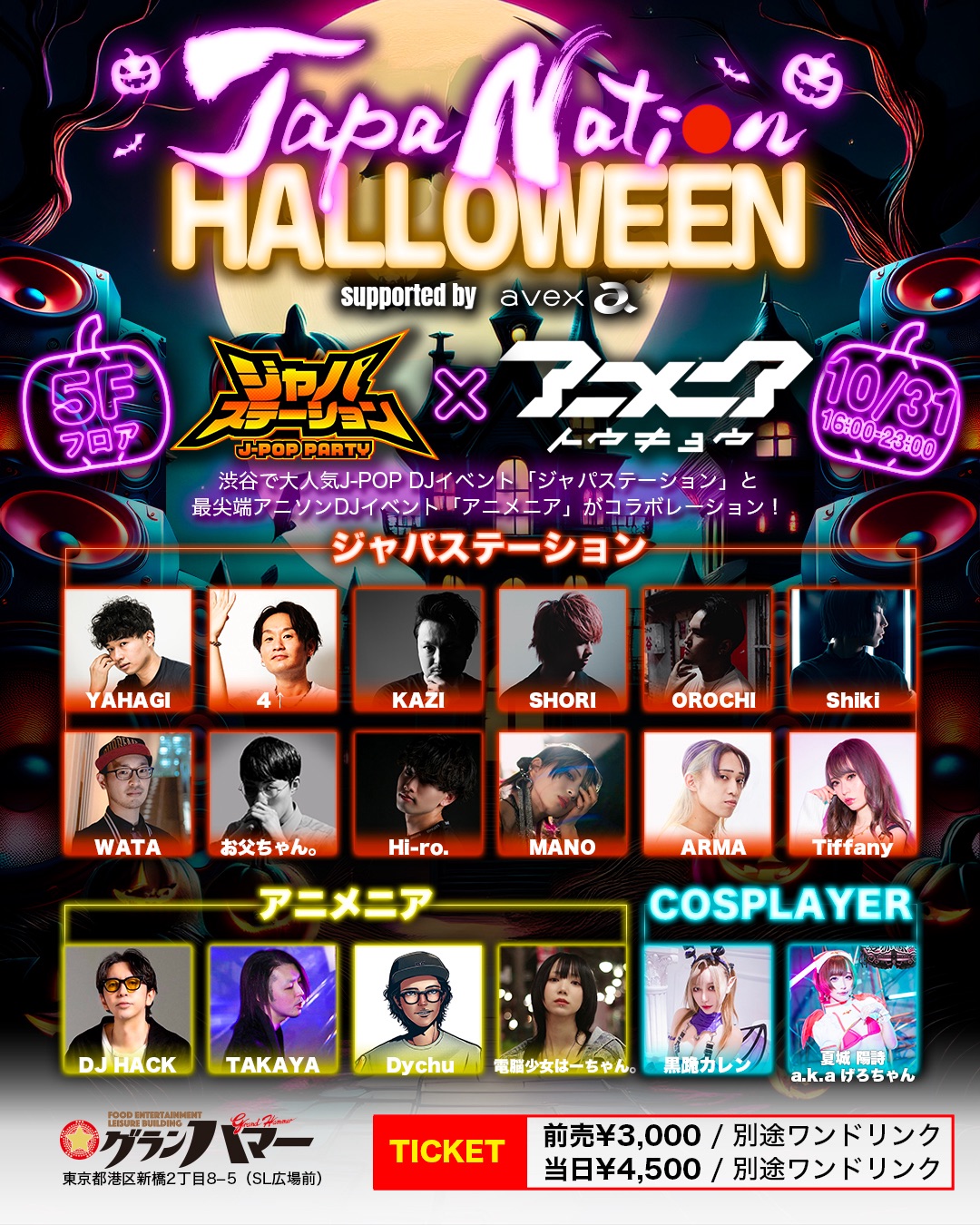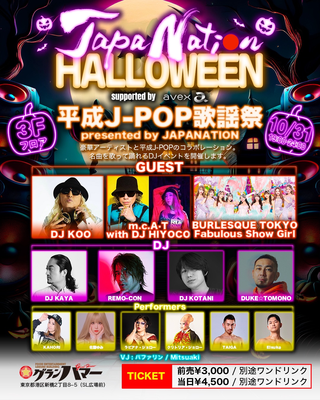 日本が世界に誇る J-POPエンターテインメントとサブカルチャー を融合した、新時代のハロウィンイベント 「JAPANATION HALLOWEEN supported by avex」 が2025年10月31日(金)、話題のエンタメ複合ビル「新橋グランハマー」にて開催!